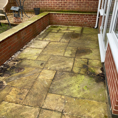 Most patios and driveways can rapidly start to look dirty and accumulate lichen and moss over time if not properly maintained. In colder, wetter conditions this can even become slippery and dangerous. Cleaning and sealing patio surfaces and driveways, regardless of the type of surface (limestone, sandstone, slate etc.) slows down the re-growth of moss and algae